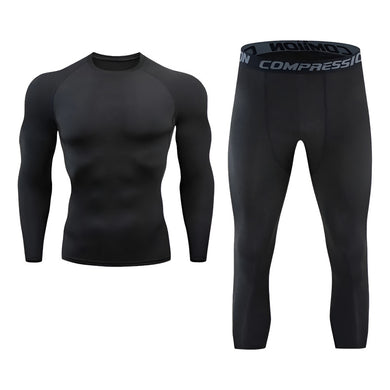 Primera Capa Hombre, Camiseta Y Calza Conjunto Térmicos Negro Lisa Xl