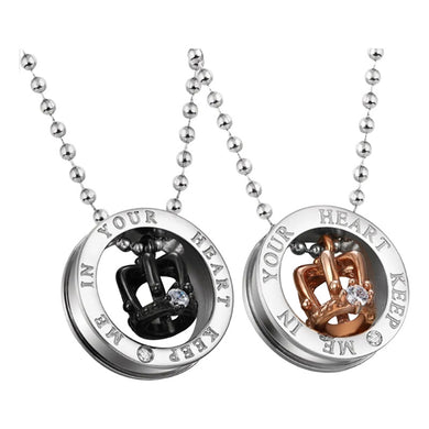 Collares Para Parejas Corona Rhinestone Amor Regalo 2 Piezas Plateado