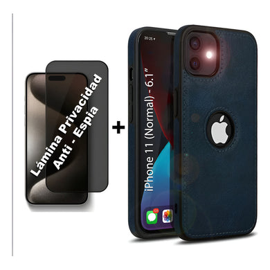 Carcasa Cuero Premium Para iPhone (todos) + Lámina Espía Negro 13 Pro