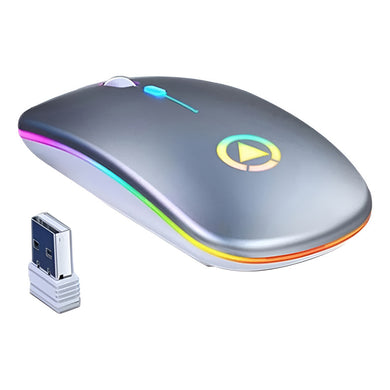 Mouse Inalambrico Recargable Ultra Delgado Silencioso Led Gris