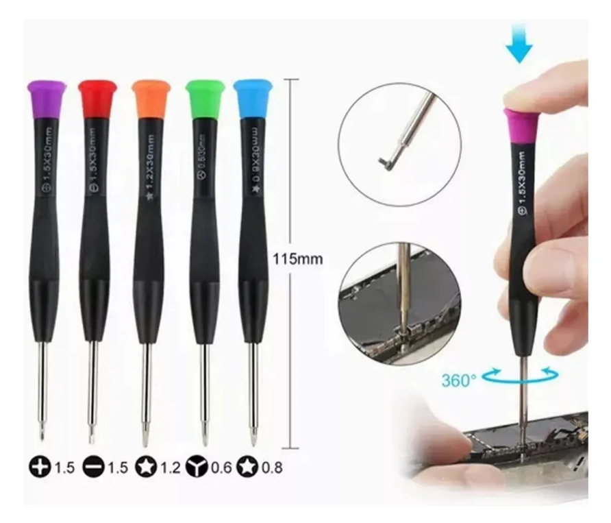 Set de destornilladores estrellas,cruz, paleta pinzas, etc. Especial para reparación de celulares, electrónica, etc. Set x 18 piezas. Es ideal para complementar tu kit de herramientas.