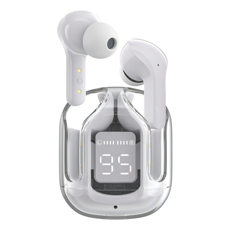 ESPECIFICACIONES TÉCNICAS DEL PRODUCTO: 1. Versión de Bluetooth: 5,2; Microprocesador: Besttechnic BES2300IU 2. Batería del estuche de carga: 500 mAh; batería de los auriculares: 40 mAh 3. Tiempo de música: 4 horas; Tiempo de llamadas: 3 horas 4. Peso: 39,5 g 5. Accesorios: cable de carga tipo C, olivas. 6. Clasificación impermeable: IPX4 7. Cancelación de sonido 8. Cuatro micrófonos 9. Certificación: CE, RoHS, FCC, EAC, TELEC, BQB, informe de prueba UL62368. 10. Pantalla digital LED, material translúcido, textura futura. 11. Reducción de ruido de llamada ENC, llamada más clara. 12. Admite carga rápida, carga durante 10 minutos, uso durante 1,5 horas. 13. Control Touch en auriculares CONTENIDO EN CAJA: 2 Auriculares 1 Estuche de carga 1 cable USB-C 1 Manual