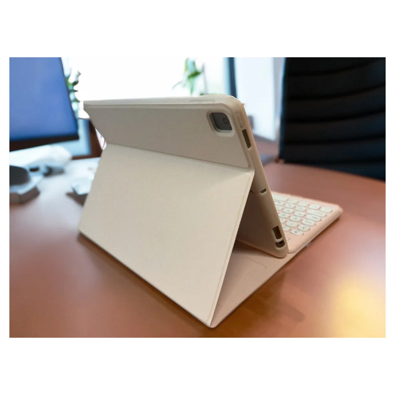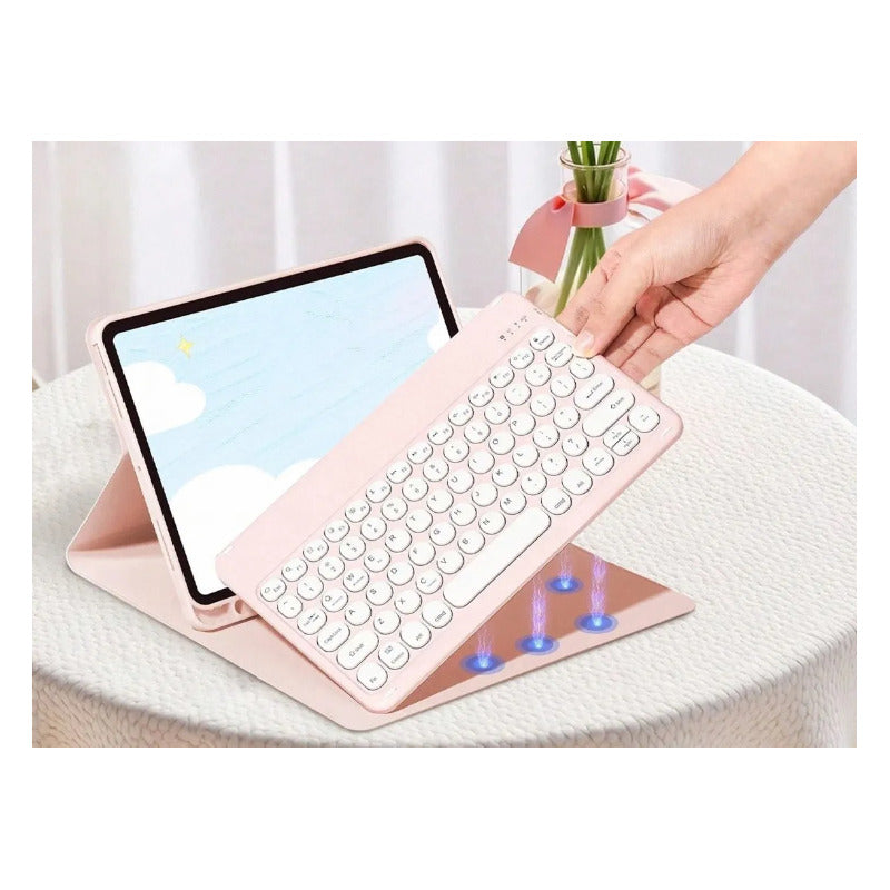 - Compatibilidad con Tablet y iPad de 10.2 pulgadas - Incluye teclado inalámbrico compatible con Windows, iOS, Android y más. Para configurar cada sistema presionar Fn + la tecla que indica el teclado. - Teclado incluye la letra Ñ - Más seguridad para tu Tablet: La case incluye tapa para evitar que la pantalla de tu Tablet se dañe. - Diseño antideslizante: puedes colocar tu iPad en distintos ángulos según el que más te acomode, la carcasa cuenta con un diseño antideslizante. - Con espacio para guardar tu Apple Pen. - Auto apagado/encendido: al abrir la tapa de la carcasa se activará automáticamente la pantalla, lo mismo al cerrar se apagará, siendo más práctico y permitiendo que la batería aumente su duración. - Diseño resistente a caídas. - Disponible en rosado y negro - Úsalo de distintas maneras: acomoda la Tablet al ángulo que más te acomode dependiendo del uso que le necesites dar, ideal para lectura y escribir. ----------------------------------------------------------------------- FICHA TÉCNICA - Material: ABS - Compatible: Windows/Android/IOS - Chip principal: PixArt - Bluetooth: Versión 5.0 - Distancia Máxima: 10 m - Tiempo de carga: 4 hrs - Tiempo ininterrumpido de uso: 40 hrs - Batería: Litio 180 mAh - Dimensiones Carcasa: 10.2 pulgadas - Disponible en: Negro y Rosado con teclado Blanco - Peso: 700 grs ----------------------------------------------------------------------- COMPATIBILIDADES: iPad 9th Gen 10,2 2021 (A2602, A2604, A2603, A2605) iPad 7th Gen 10,2 2019 (A2197, A2200, A2198) iPad 8va Gen 10,2 2020 (A2270, A2123, A2153, A2154) -------------------------------------- MODO DE USO DEL TECLADO: 1. Mover el switch hacia ON y encender el bluetooth del dispositivo a conectar. 2. Presiona el botón Conect durante 3 segundos o hasta que la luz azul comience a parpadear 3. Busca en tu dispositivo a conectar el bluetooth del teclado y conecta. En caso de que tengas problemas conectando actualiza el sistema operativo a conectar en tu teclado: Si es Android presiona Fn+Q / Windows: Fn+W / iOS: Fn+E