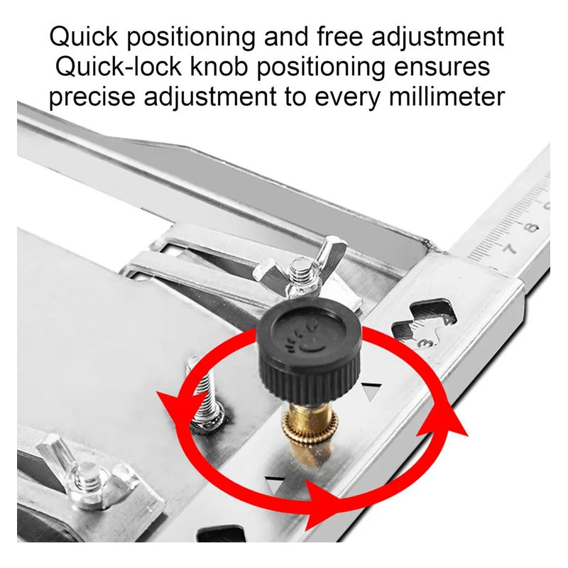 Lista de productos: Herramienta de corte multifuncional para carpintería * 1 pieza Detalles del producto: Material: metal Plata Rango de corte: 0 cm-75 cm, adecuado para máquinas cortadoras y recortadoras de siete pulgadas(La herramienta multifuncional para cortar paneles de carpintería tiene un diseño de chasis flexible y es adecuada para máquinas cortadoras y recortadoras de varios tamaños. También es adecuada para sierras eléctricas con otros tamaños de placas base inferiores a 31,2*15,4 cm.) Descripción del producto Amplio rango de corte: esta herramienta de corte de paneles puede cortar dentro del rango de 0 cm a 75 cm, satisfaciendo las necesidades de madera de diferentes tamaños. Diseño multifuncional: además de la función de corte, también se puede utilizar para recortar bordes para mantener la madera con bordes limpios y regulares. ESTILO GRANDE: El diseño grande le permite trabajar con tamaños de madera más grandes, agregando flexibilidad y facilidad de uso. Aspecto plateado: hecho de metal plateado, es duradero y moderno, y agrega un toque de estilo cómodo a su trabajo de carpintería. Ventajas y valor del producto: Mejore la precisión de la carpintería: esta guía de bordes le ayuda a facilitar la medición, mejorar la eficiencia del trabajo y garantizar la precisión en los lados izquierdo y derecho con marcas de escala precisas y reglas dobles claras. Materiales superiores: fabricados con acero inoxidable de alta calidad, nuestra guía de bordes para carpintería destaca por su durabilidad superior y propiedades resistentes al desgaste. Esta guía, una solución duradera y respetuosa con el medio ambiente, no se deforma ni daña fácilmente, lo que garantiza una vida útil duradera. Diseño particular: con nuestra guía de bordes para carpintería de diseño exclusivo, puede colocar su enrutador de manera rápida y firme para realizar cortes perfectos. La perilla de bloqueo rápido permite un fácil ajuste del ancho de corte, lo que garantiza un funcionamiento suave y sin atascos. Fabricación ingeniosa: elaborada con mano de obra excepcional, nuestra guía de bordes para carpintería está diseñada con una función de ajuste de nivel que hace que cortar en ángulos precisos sea fácil para obtener resultados perfectos. Satisfaga múltiples demandas: nuestra guía de bordes para carpintería proporciona un uso generalizado para una variedad de materiales. Su placa inferior cuenta con múltiples orificios preestablecidos, lo que permite una fácil instalación y uso de máquinas cortadoras y recortadoras para satisfacer diversas necesidades de proyectos. Aplicación multifuncional: no solo es adecuada para carpinteros profesionales, sino también muy adecuada para entusiastas del bricolaje y artesanos, desempeñando un papel importante en la decoración del hogar, la fabricación de muebles y la fabricación de artesanías.