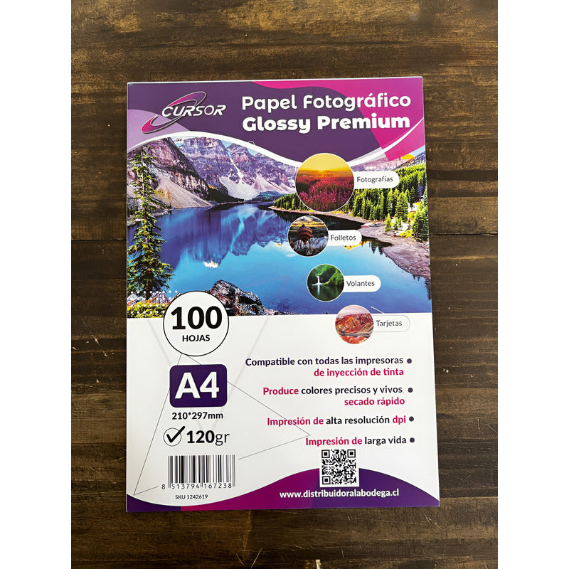 Papel Fotografia Brillo 120gr. Paquete 100 hojas -Papel fotográfico recubierto de resina, obtiene impresiones de alta calidad y escenas con mucho más realismo. Es de secado instantáneo, con colores más vivos, a prueba de manchas. -Ideal para realizar trabajos con alto brillo por ambos lados como photobook, tarjetas de presentación, etc. -Papel de alta resolución brillante. -Papel de excelente calidad.