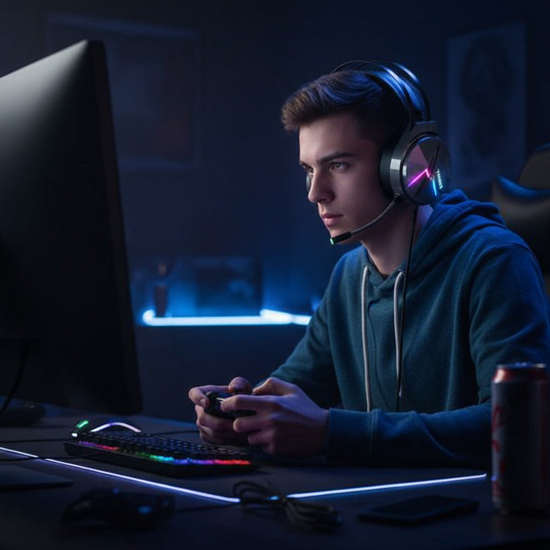 Lleva tus sesiones de juego al siguiente nivel con los audífonos TAIDU THS309 RGB. Sonido envolvente 7.1, luces LED RGB, micrófono incluido, ideal para gaming, streaming o llamadas. Características destacadas: • Sonido 7.1 virtual que mejora la localización de enemigos y ambientes. • Conectividad dual: entrada de 3,5 mm y USB para más versatilidad. • Micrófono con cancelación de ruido, claro y ajustable. • Almohadillas tipo “over-ear” con cuero suave y espuma cómoda para largas jornadas de uso. • Luces RGB llamativas para un estilo gamer moderno. • Cable largo (~1,8-2,2 m) para movilidad sin tirar del equipo. Ideal para: Gamers de PC que quieren practicidad y estilo. Streamers o creadores de contenido que necesitan buen micrófono e iluminación. Usuarios que también usan consola o celular con adaptadores. Estado: Nuevo Incluye en la compra: Audífonos + micrófono integrado + garantía · Longitud del cable: 1,8 m · Diámetro del diafragma: 50 mm · Entrada: 5Vdc <45mA · Impedancia: 21 ± 15% · Sensibilidad: 109 dB ± 3 dB · Respuesta de frecuencia: 20Hz-20KHZ · Micrófono: 4.0 mm x 1.5 mm · Cable: 2,2 m · Tipo de conector: 3,5 mm y USB · Tamaño: 200 mm x 230 mm x 110 mm · Peso: 280g