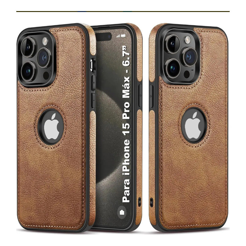 Carcasa Cuero Premium Para iPhone (todos) + Lámina Espía Marrón 12 Pro Max
