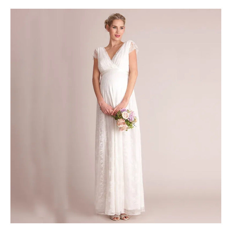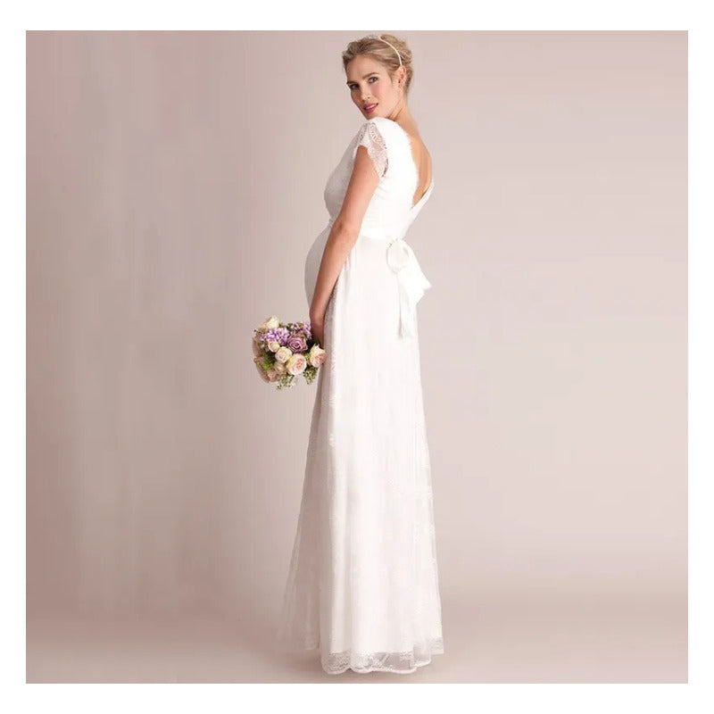 Vestido De Maternidad De Encaje Blanco Para Mujer Embarazada