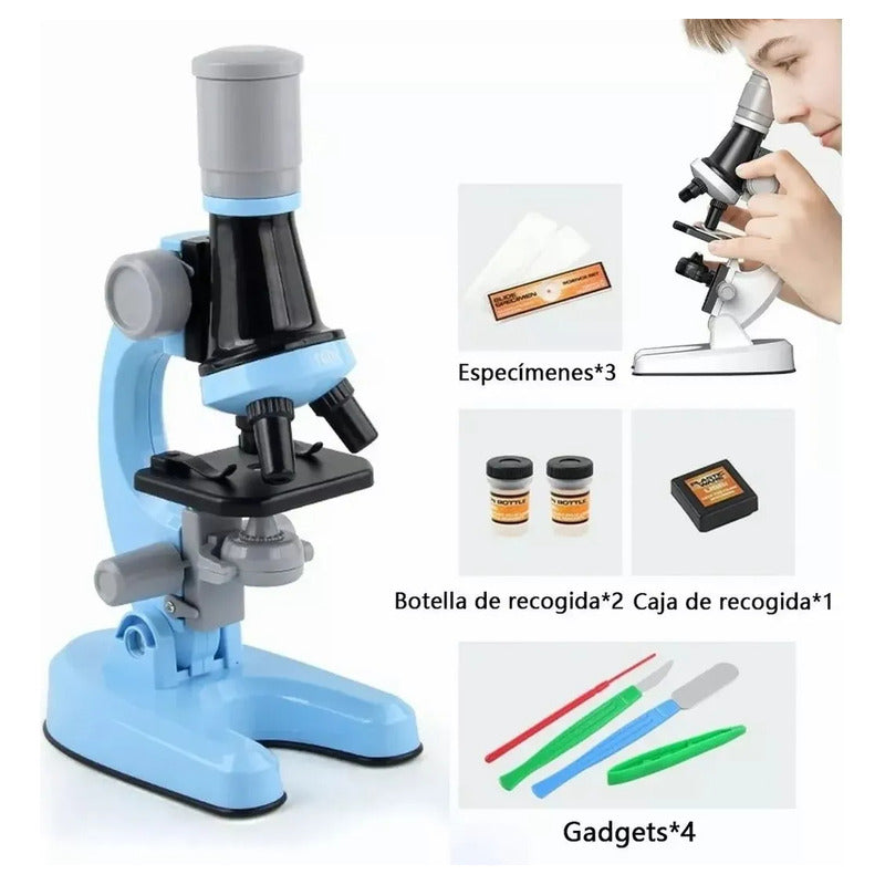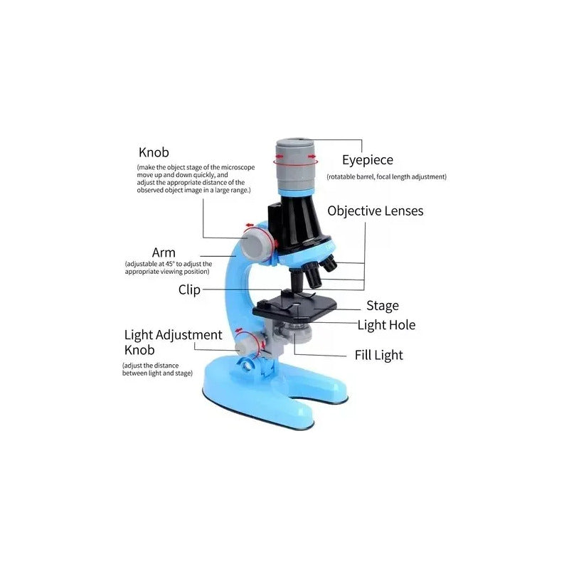 Descripción El microscopio para principiantes para niños ofrece un gran aumento para aplicaciones educativas con aumentos de 100x, 400x y 1200x. Cabezal de visualización monocular con LED. Con la luz LED y el diseño de ángulo ajustable de la lente, su hijo puede observar objetos desde el mejor ángulo de visión. Fácil de instalar y fácil de usar, la imagen es brillante y clara. Estamos comprometidos con la más alta calidad y un rápido servicio al cliente. Nos comprometemos a brindarle una solución 100% satisfactoria a cualquiera de sus inquietudes. Nota: es un microscopio de juguete para educación científica o pasatiempo, no un microscopio biológico profesional. Especificaciones: Tipo: Instrumentos científicos Subtipo: Microscopios Material: plástico. Longitud del microscopio: 21 cm aprox. Dimensiones del pedestal: aprox. 12 x 7,3 cm (largo x ancho). Tamaño del paquete: 19 x 8,5 x 24 cm (largo x ancho x alto). Objetivos: 100X, 400X, 1200X Color: negro Cantidad: 1 unidad. Características: -Microscopio de plástico de imitación. -Equipos de conversión para ajustar el aumento Incluye perilla de ajuste realista para ajustar la altura. -Aprender Educar y conocer la ciencia -Gran accesorio para kit de laboratorio químico. -Un regalo educativo bien diseñado y hecho a mano para niños que tienen mucho interés en experimentar, una elección perfecta como regalo para que los niños aprendan ciencia.
