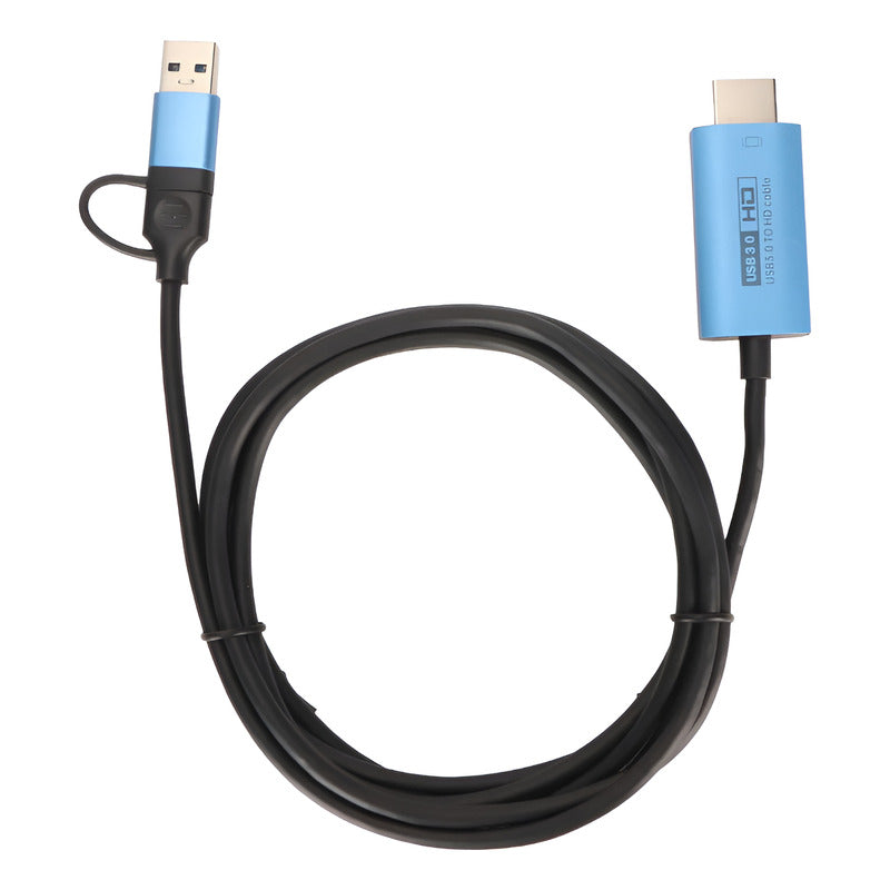 Cable de interfaz multimedia USB3.0 a HD de 5 Gbps 1080P Cable convertidor de interfaz multimedia USB C a HD de 6.6 pies Característica: ALTA DEFINICIÓN: utilizando una interfaz USB 3.0 SuperSpeed de gran ancho de banda (5 Gbps), esta interfaz multimedia USB 3.0 a HD ofrece imágenes gráficas de alta definición a su HDTV o monitor con una resolución de hasta 1920 x 1080, por lo que su ordenador resuelve fácilmente los problemas de la pantalla de vídeo externa. MODO DUAL: este conversor de interfaz multimedia USB a HD modo extendido, que permite a su portátil ver varias tareas a la vez, y modo espejo para disfrutar visualmente de la pantalla grande de su portátil. DISPOSITIVOS APLICABLES: Este adaptador de interfaz multimedia USB 3.0 a HD se utiliza para conectar dispositivos con puerto USB (por ejemplo, portátiles o de escritorio) a dispositivos con interfaz multimedia HD (por ejemplo, monitores, proyectores, televisores) para obtener soluciones de múltiples pantallas que amplían el tiempo de trabajo y el espacio de aplicaciones. .CHIP ESTABLE: puerto USB 3.0 ultrarrápido con chip premium incorporado para un rendimiento estable y una larga vida útil. Equivalente a una tarjeta gráfica externa, que proporciona vídeo HD fluido a su televisor de alta definición, proyector o monitor. SISTEMAS COMPATIBLES: compatible con Windows, Android, OS X, perfecto para juegos, entretenimiento, cine en casa, videoconferencias, formación corporativa y más. Especificaciones: tipo de artículo: interfaz multimedia USB a HD Material del cable: aleación de aluminio Color: azul Longitud del cable del conector: aproximadamente 2 metros/6,6 pies Tipo: USB3.0/USB C a HD Paquete de interfaz multimedia Lista: 1 x cable de interfaz multimedia USB a HD